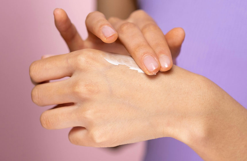 - applicate sulla parte superiore delle mani: iniziate ad applicare la crema sulla parte superiore delle mani, massaggiando delicatamente con movimenti circolari dal centro verso l’esterno. Questo aiuta a distribuire uniformemente il prodotto;